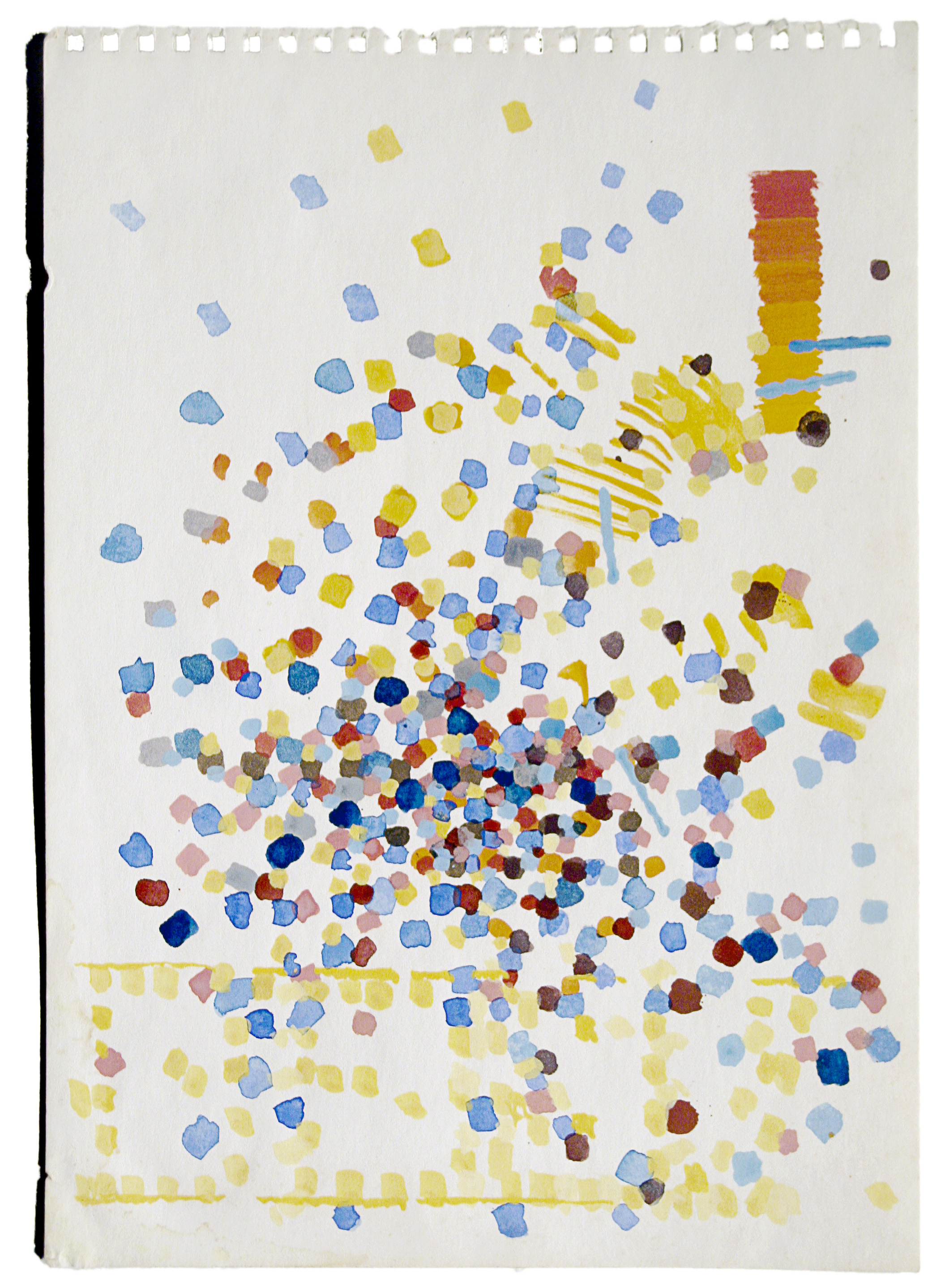 Andrew Forge Well, it’s a long story… As you know, since I started working with dots I’ve been very interested in the way in which the dot itself seems to invite different doings, in a sense. You want to look at them close, you want to see what the dots are doing when you got your nose stuck in them, then you want to stand back and see what they do at a distance… .